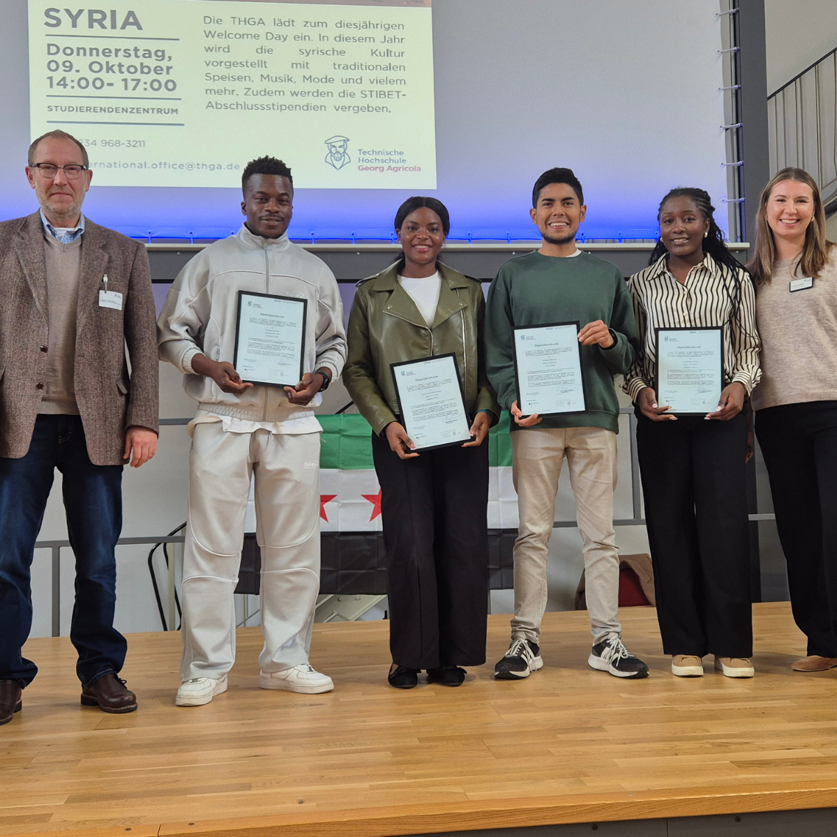 Ihre Auszeichnung erhielten die Studierenden von Prof. Ludger Rattmann, Vizepräsident für Hochschulentwicklung, auf dem diesjährigen traditionellen Welcome Day, bei dem sich die syrische Community den Studierenden und allen Erstis vorstellte.